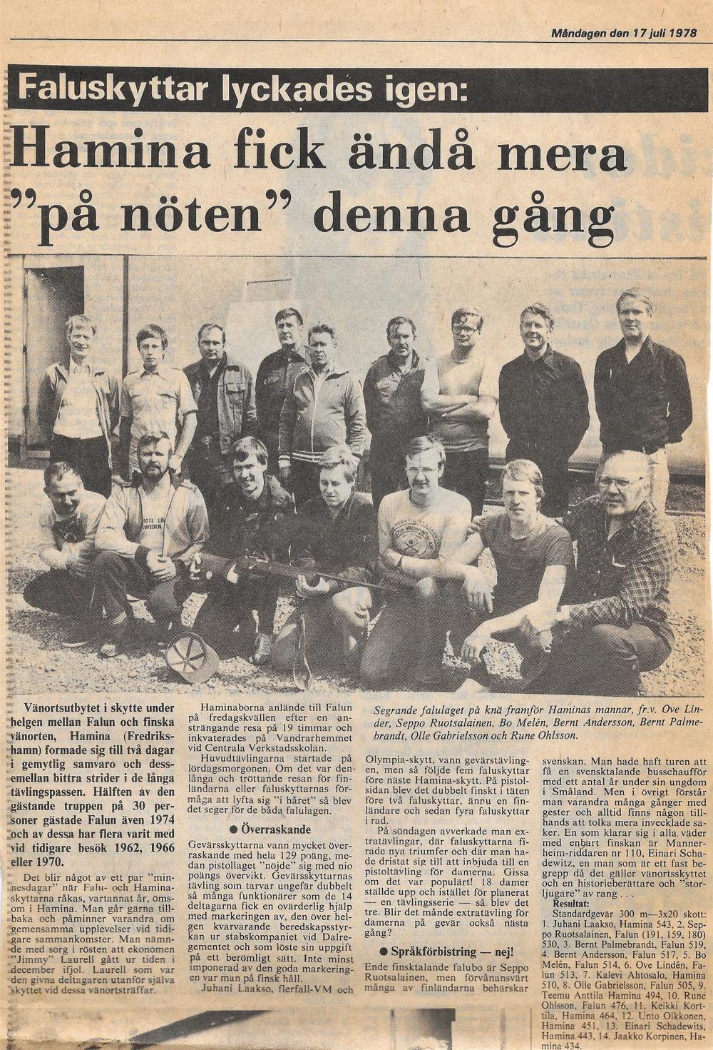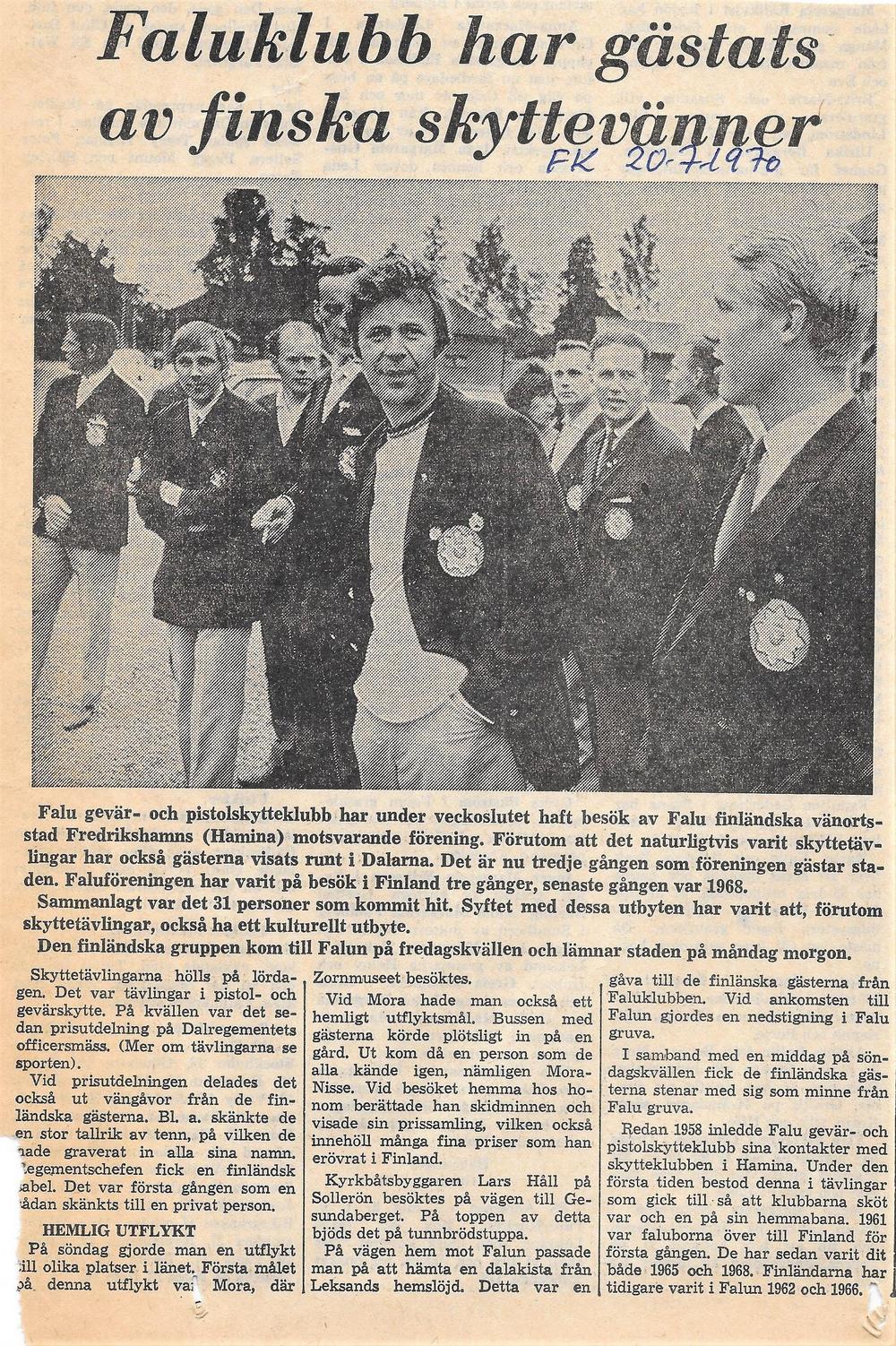 Alla kuvia Hamina-Falun kaupunkiotteluista tehdyistä lehtijutuista: